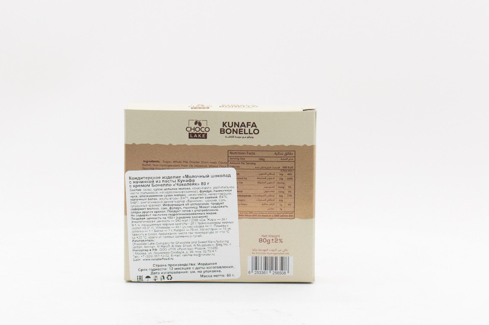 Молочный шоколад Choco Lake с начинкой из пасты Кунафа с кремом Бонелло (Иордания) 80г0,00 руб. за штуку (в упак. 20 шт.) |